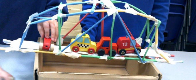 Juniper class have been learning about structures and became bridge engineers for an afternoon. They learnt that triangles made bridges strong and were challenged to see how many vehicles their bridges could hold.